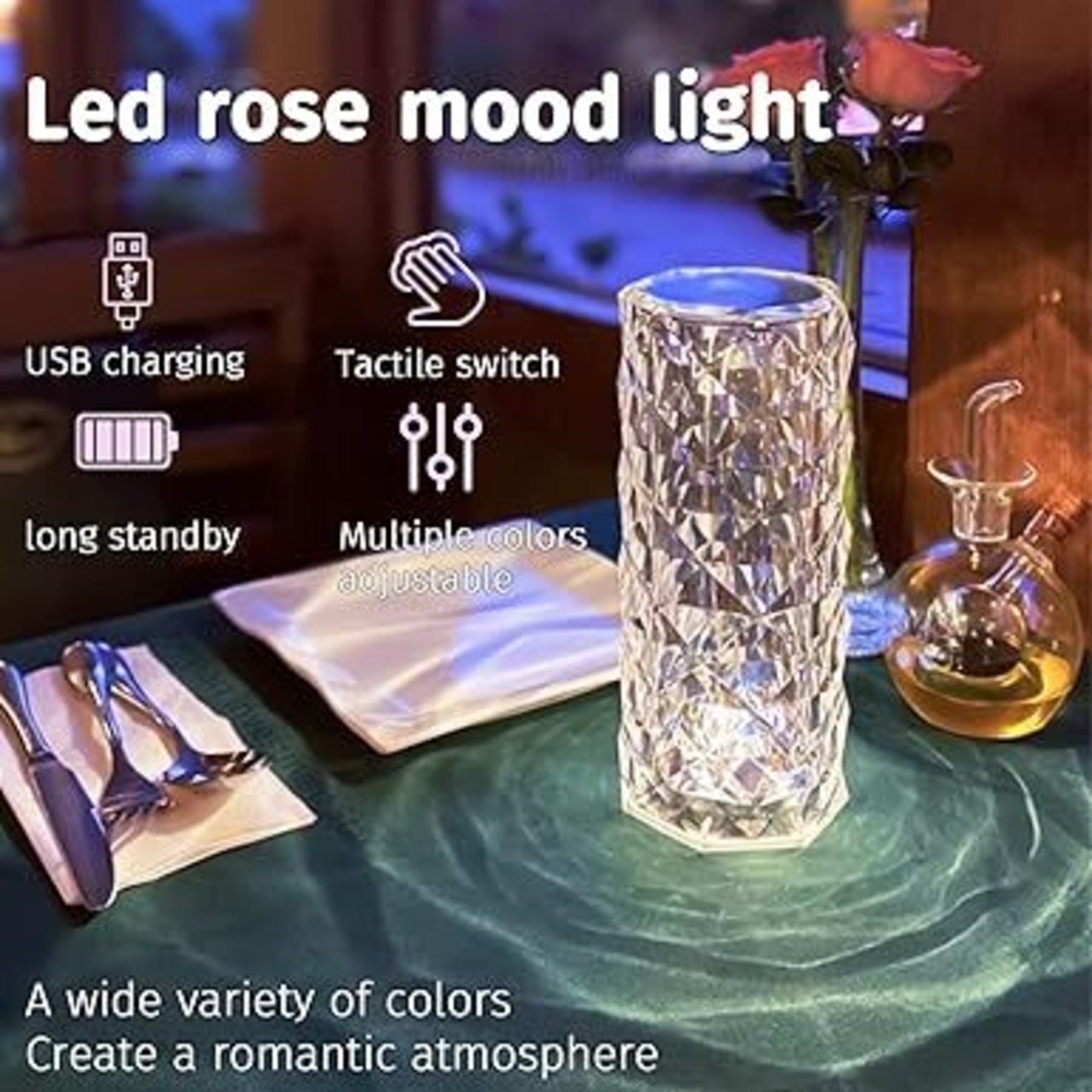 D-18送料無料 新品 10個セット ローズクリスタルランプ クリスタルランプ クリスタル テーブルランプ 卓上 透明 常夜灯 タッチ調光 USB充電式 ベッドサイドランプ 雰囲気を演出するナイトライト ベッドサイドランプ 飾り ギフト (ローズクリスタルランプ) (ローズライト)