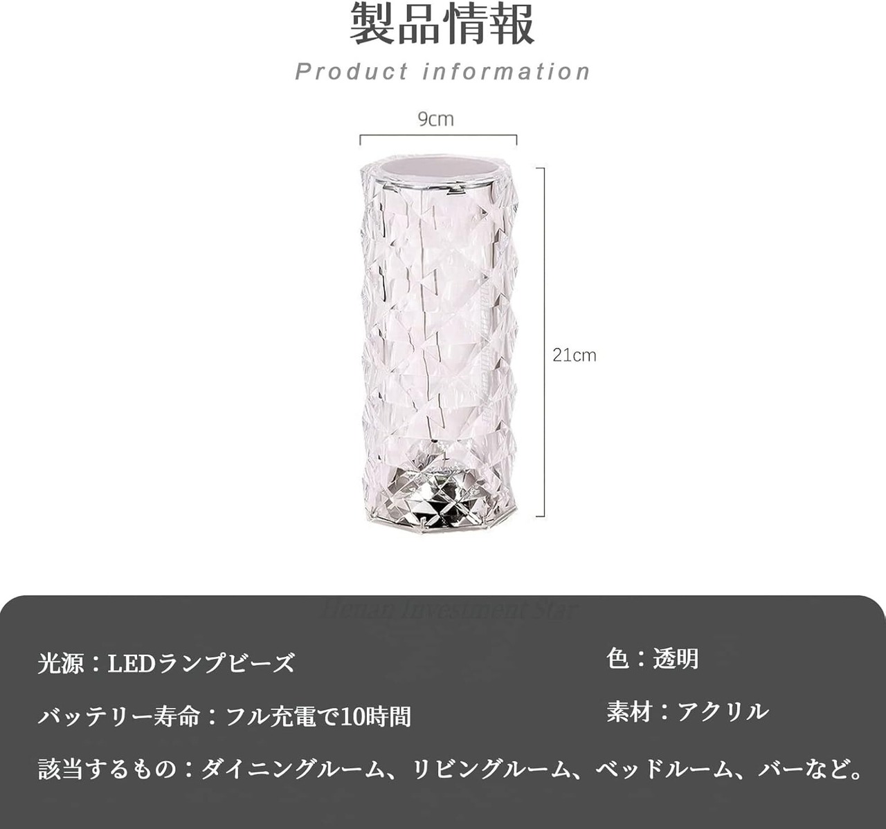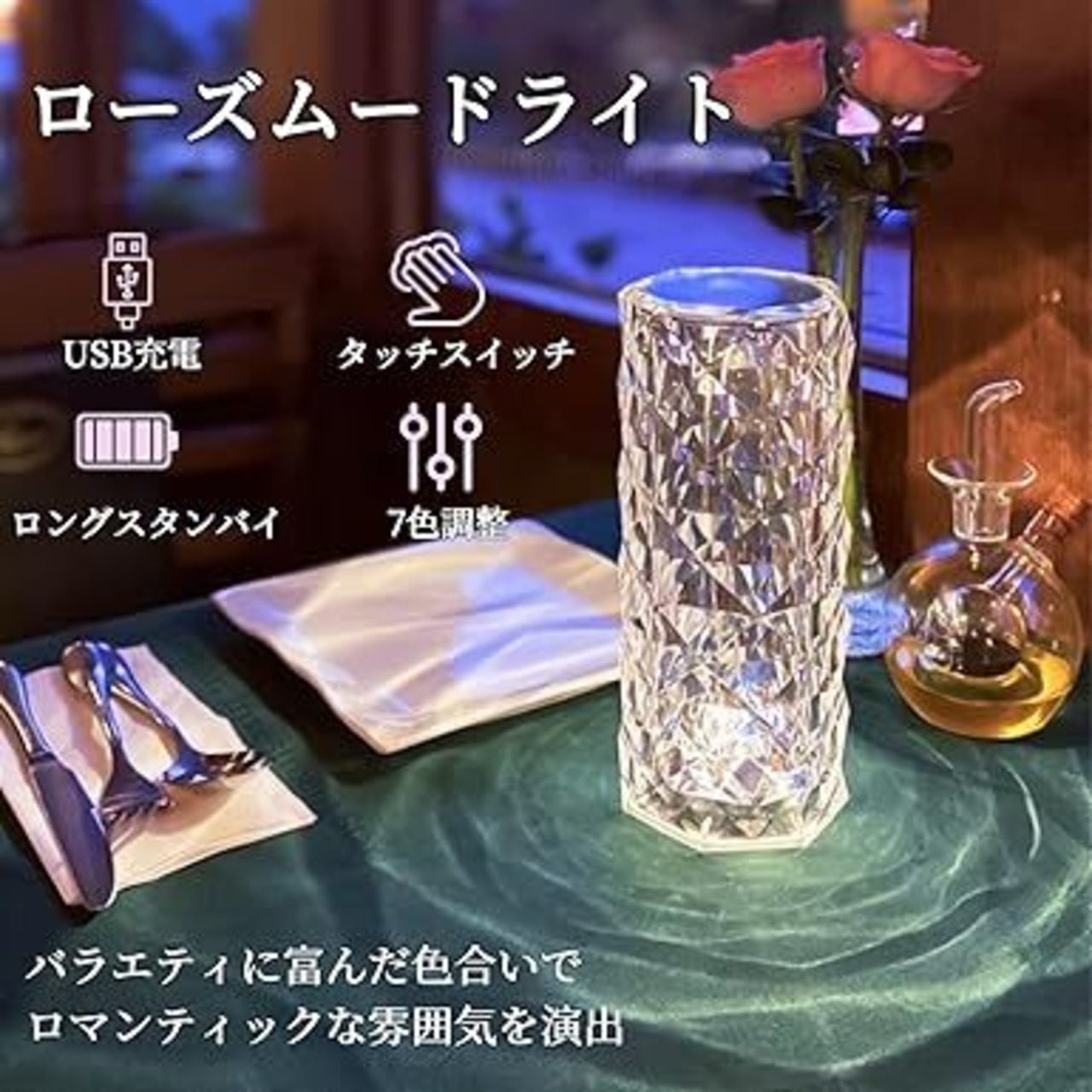 【高品質な素材】を使用しています。] 本製品は安価なプラスチック素材ではなく、高品質のアクリルを使用しています。 RGB16色のクリスタルローズライトは、上部に高感度のタッチパネルを搭載しています。上部をタッチすることで、クリスタルローズランプを点灯させることができます。 ロマンチックで温かみのある雰囲気を演出します。